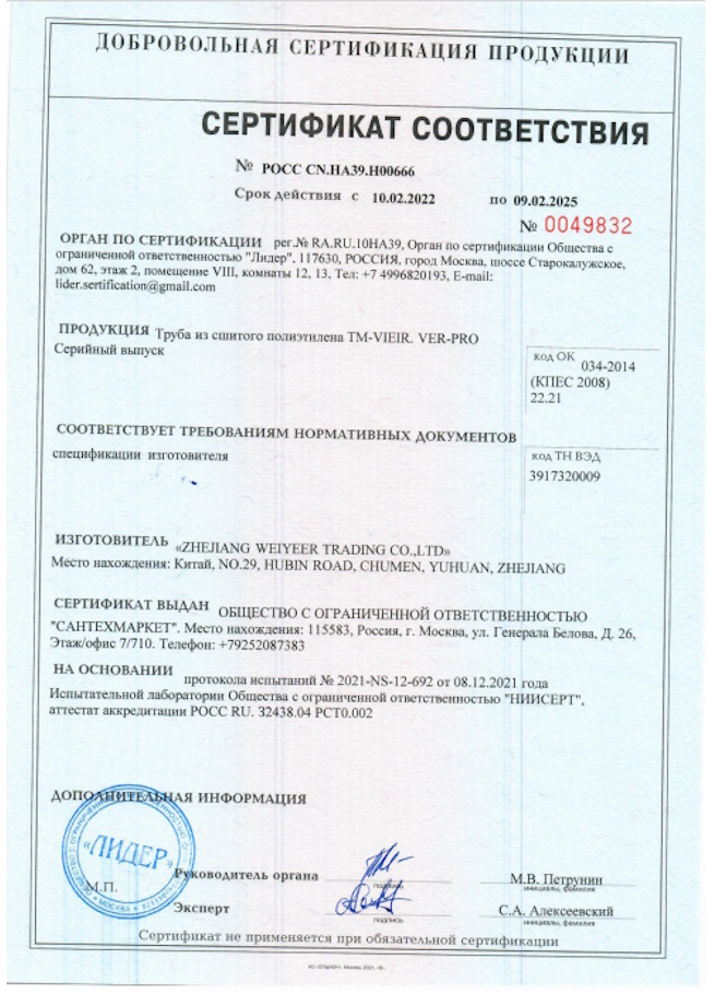Сертификат соответствия на трубы